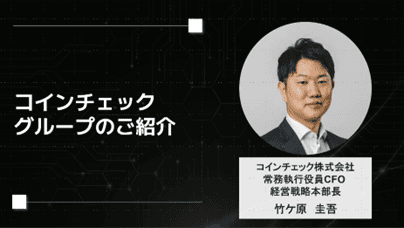 続いて、コインチェック株式会社 常務執行役員 CFO 兼 経営戦略本部長の竹ケ原圭吾氏が、コインチェックグループの事業概要を紹介しました。