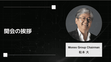 オープニングセッションでは、コインチェックグループおよび子会社を束ねるマネックスグループ 会長の松本大氏より、開会にあたってのメッセージが共有されました。